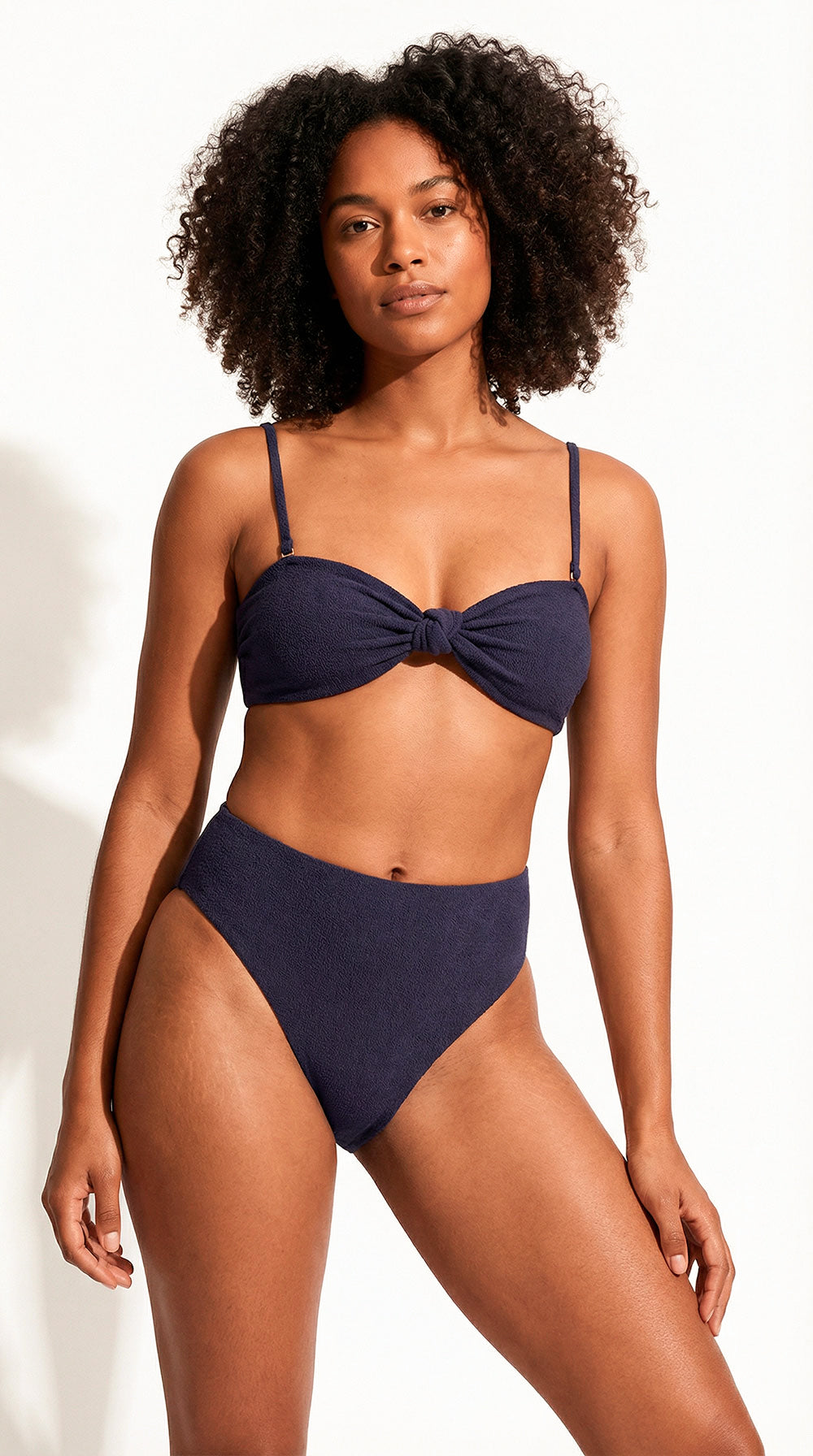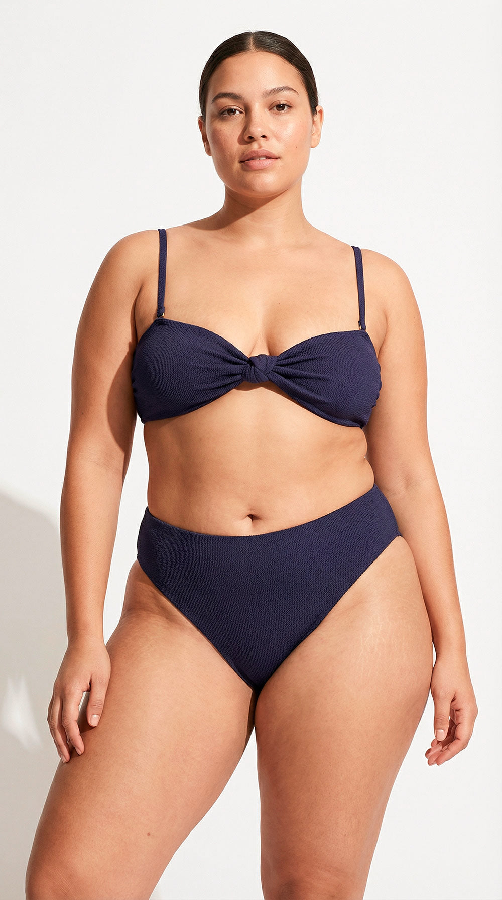 Der Sacha Bikini-Tanga in Marineblau ist aus weichem, recyceltem Polyester gefertigt und besticht durch seine schöne, strukturierte Oberfläche. Er hat einen hohen Bund, einen hohen Beinausschnitt und einen brasilianischen Schnitt, der Ihre Kurven schmeichelhaft betont. Vervollständigen Sie das Set mit unserem passenden Sacha Bikini-BH oder Sacha Bikini-Bandeau für einen traumhaften Strandlook.