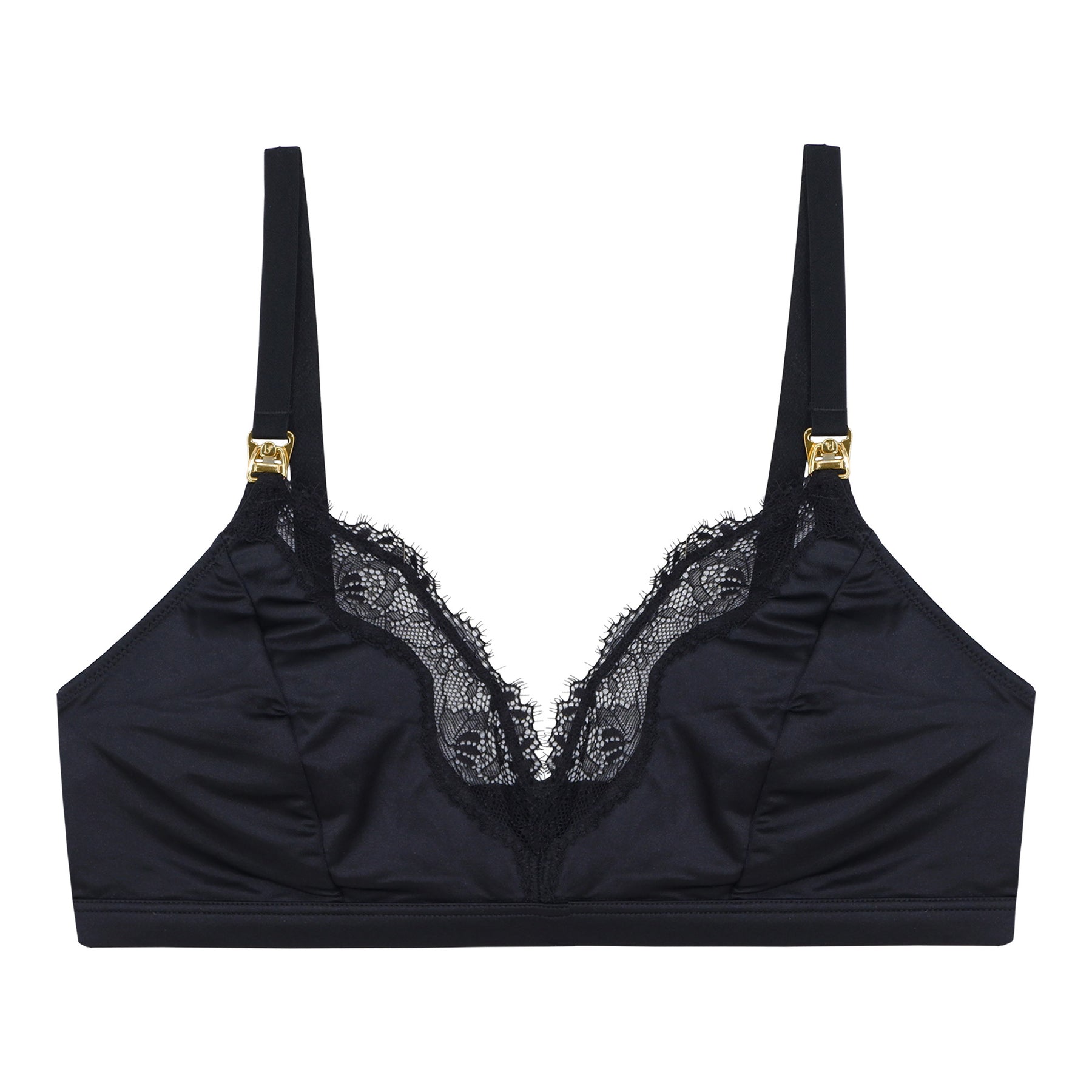 Notre soutien-gorge de maternité Erica noir est confectionné en satin stretch doux pour un confort optimal. Il est doté de larges bretelles et d'un élastique à la taille pour un maintien parfait, ainsi que de fermoirs faciles à ouvrir pour allaiter en toute simplicité. À associer avec le string ou la culotte Erica pour un ensemble complet.