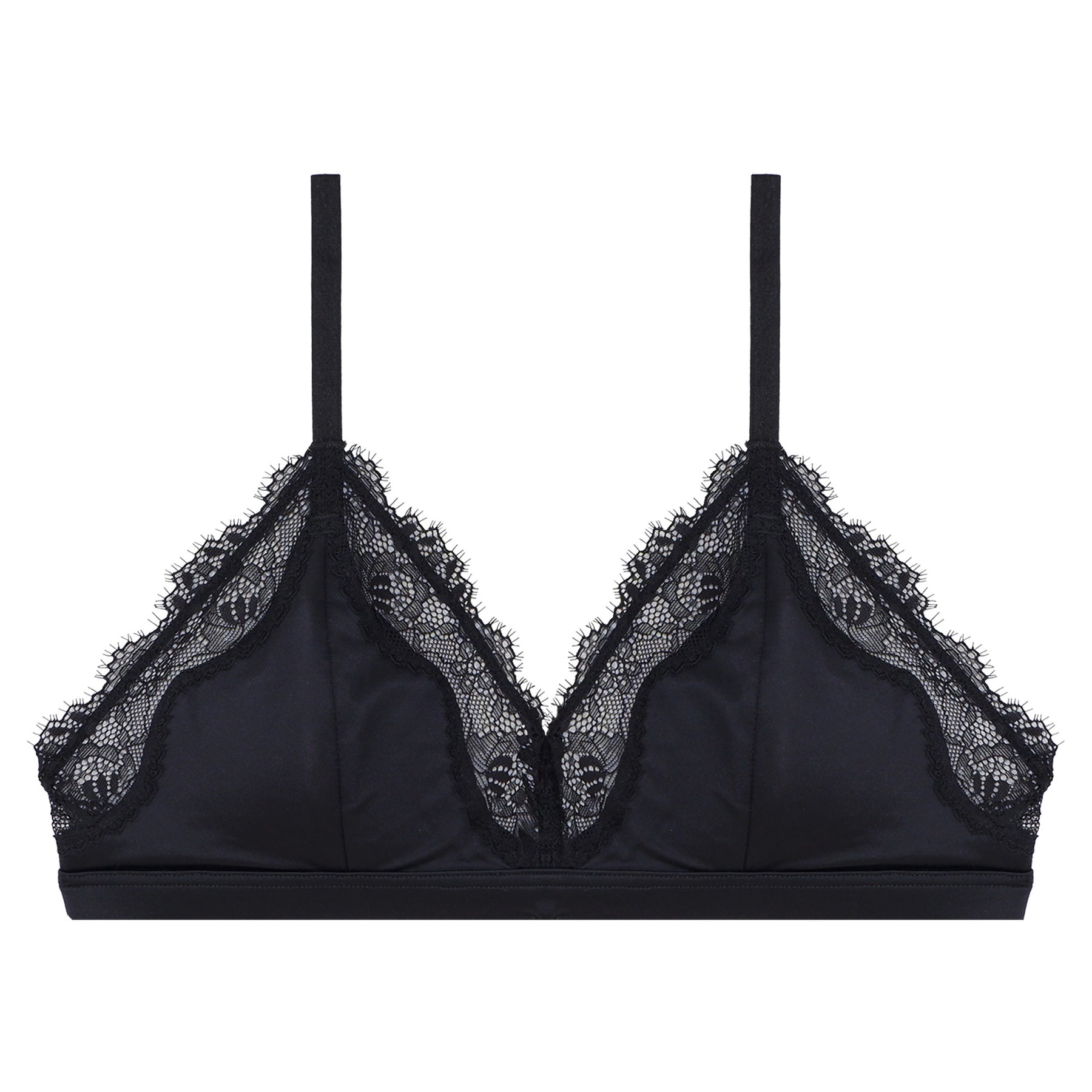 Erica Bra in black is crafted from soft stretch satin ensuring ultimate comfort. This classic bra features a delicate lace trim that adds a feminine touch, with removable padding for customizable comfort. Designed to ensure a seamless look, it's the perfect everyday bra for effortless comfort and versatility. Match with Erica String or Erica Briefs for a complete set.